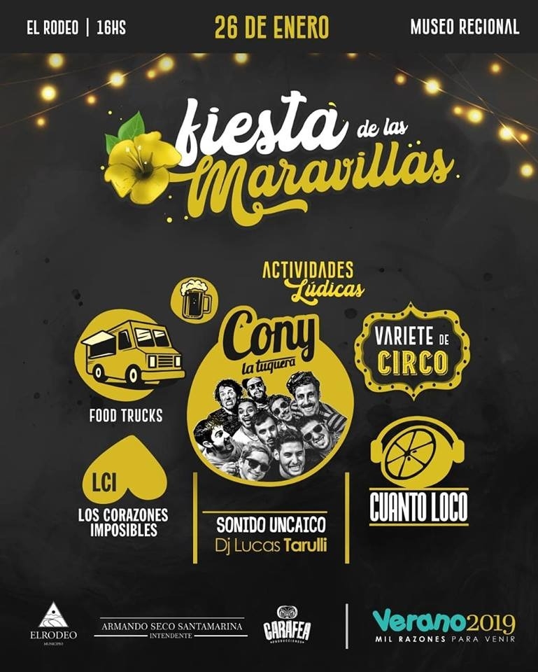 La 1º edición de la Fiesta de las Maravillas contará con un espacio gastronómico de food trucks para comer cosas ricas y degustar cervezas artesanales y, también, los productores de El Rodeo tendrán su espacio para comercializar artesanías y producciones locales.