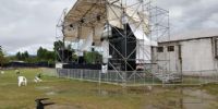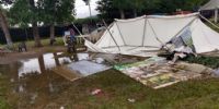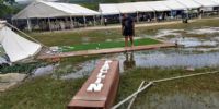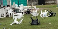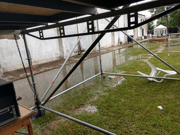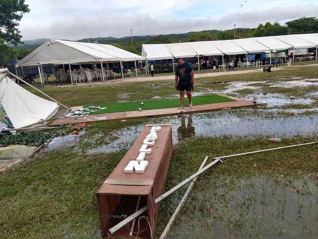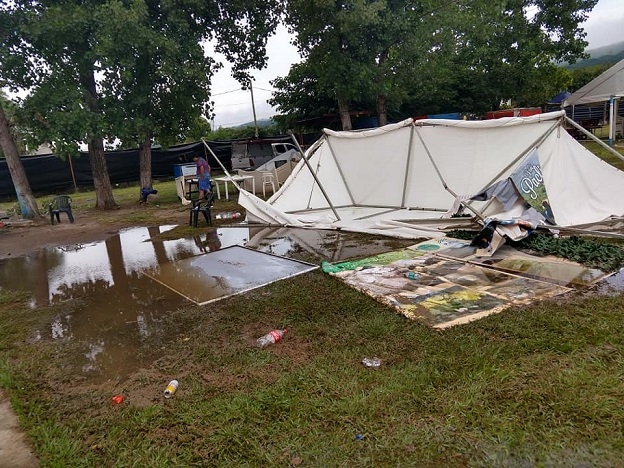 Si bien se habían colocado carpas para evitar que la lluvia arruine la fiesta, las fuertes ráfagas de viento volaron todo lo que estaba a su paso y obligaron a los organizadores a suspender el evento.