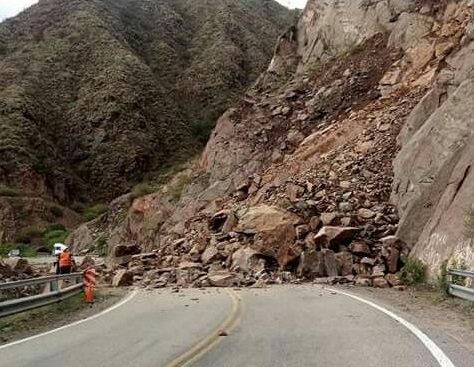 Vialidad Nacional informa a quienes deseen transitar por Ruta Nacional N°40, que deberán hacerlo con suma precaución por derrumbes sobre calzada, a la altura del km 4.099.