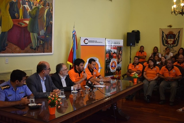 “Este lanzamiento surge de los lineamientos emanados de la gobernadora Lucía Corpacci, de maximizar las comunicaciones de Defensa Civil, y sobre todo en estos tiempos que son bastante complicados en materia meteorológica”, expresó Martín Castelli, director de Defensa Civil, durante el acto de presentación de este jueves en Casa de Gobierno, del que participaron el vicegobernador de Catamarca, Jorge Solá Jais, el secretario de Seguridad, Marcos Denett, y el jefe de Policía, Crio. Gral. Orlando Quevedo.