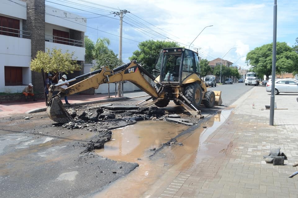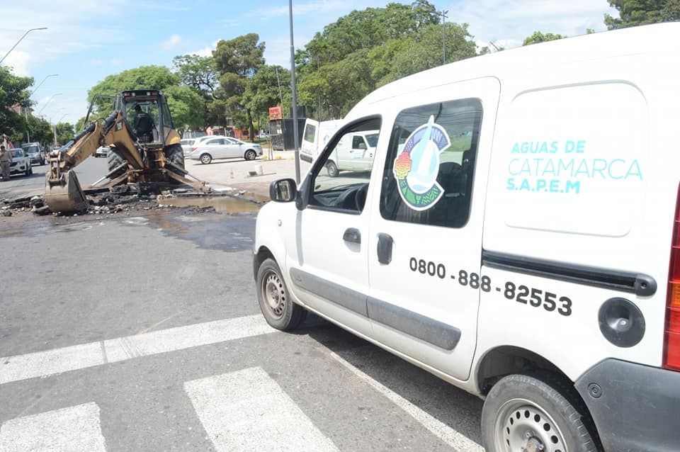 Desde la empresa Aguas de Catamarca informaron que se trabaja en la reparación de caño Asbesto cemento 400 mm. en calle Junín esquina Av. Belgrano con el tránsito interrumpido.