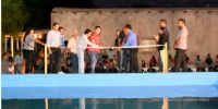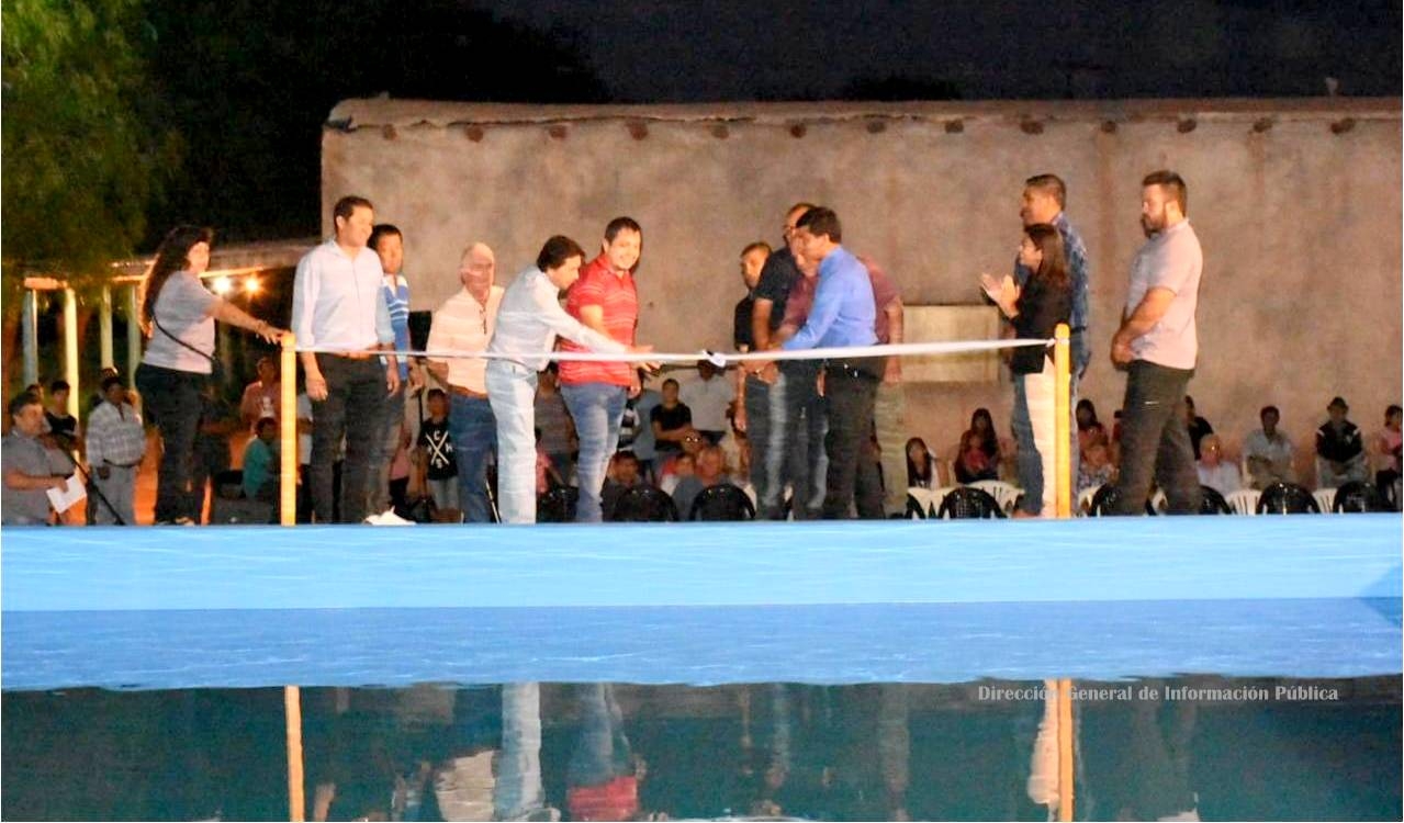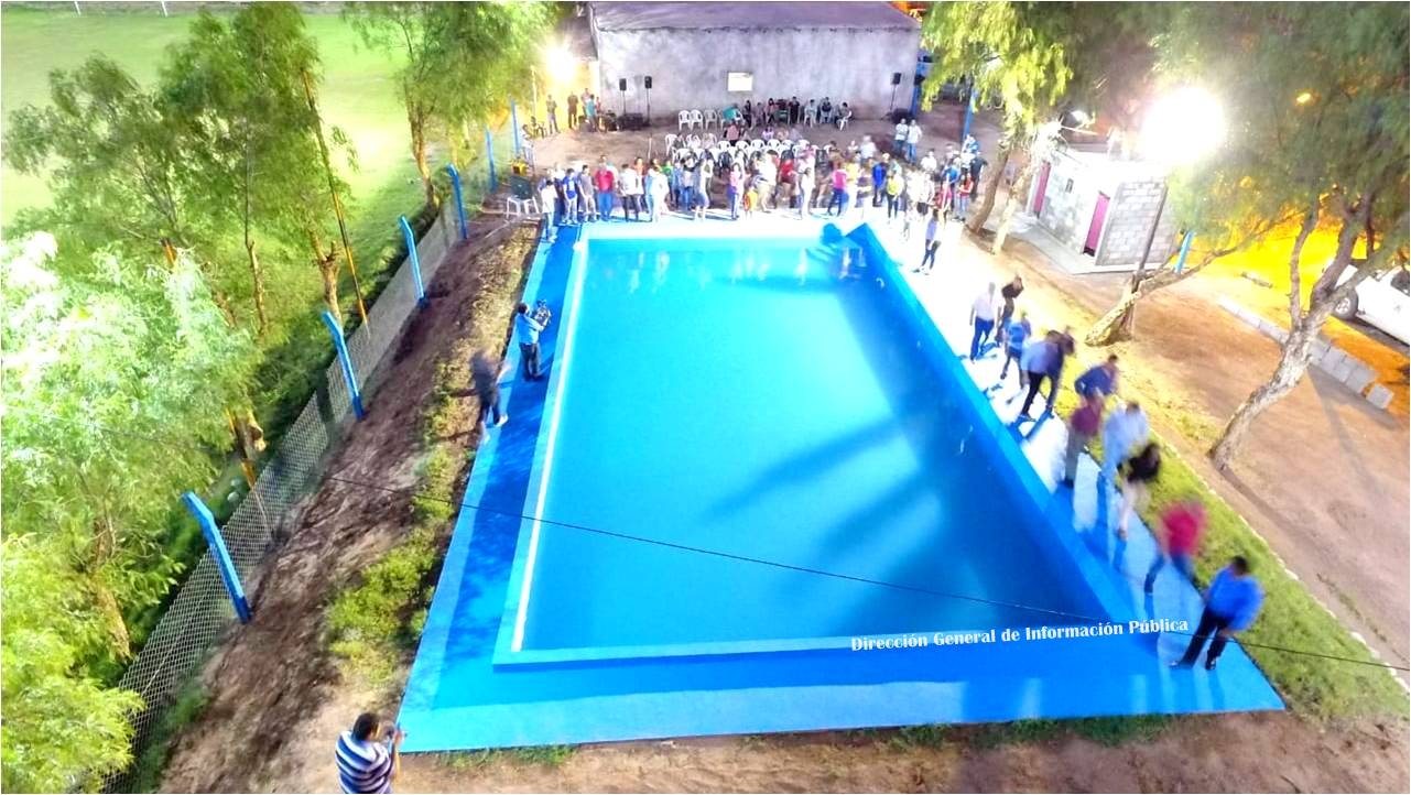 ras las alocuciones, se procedió al descubrimiento de la placa recordatoria de la obra y posteriormente al corte de cintas, con lo cual quedó oficialmente inaugurada la pileta de natación que posee una dimensión de 14 metros de largo por 8 de ancho, con 1,40 mts. de profundidad máxima.