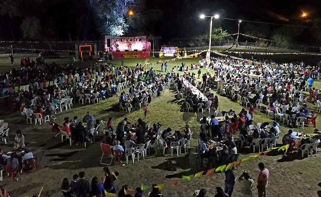 Luego, el festejo central se llevó a cabo en el Club Andino, donde la Comisión junto a los vecinos del lugar, realizaron un gran trabajo de ornamentación junto a la distribución de sillas y mesas, además de gran cantidad de comida, empanadas, asado, locro, que ofrecieron al público de manera gratuita.