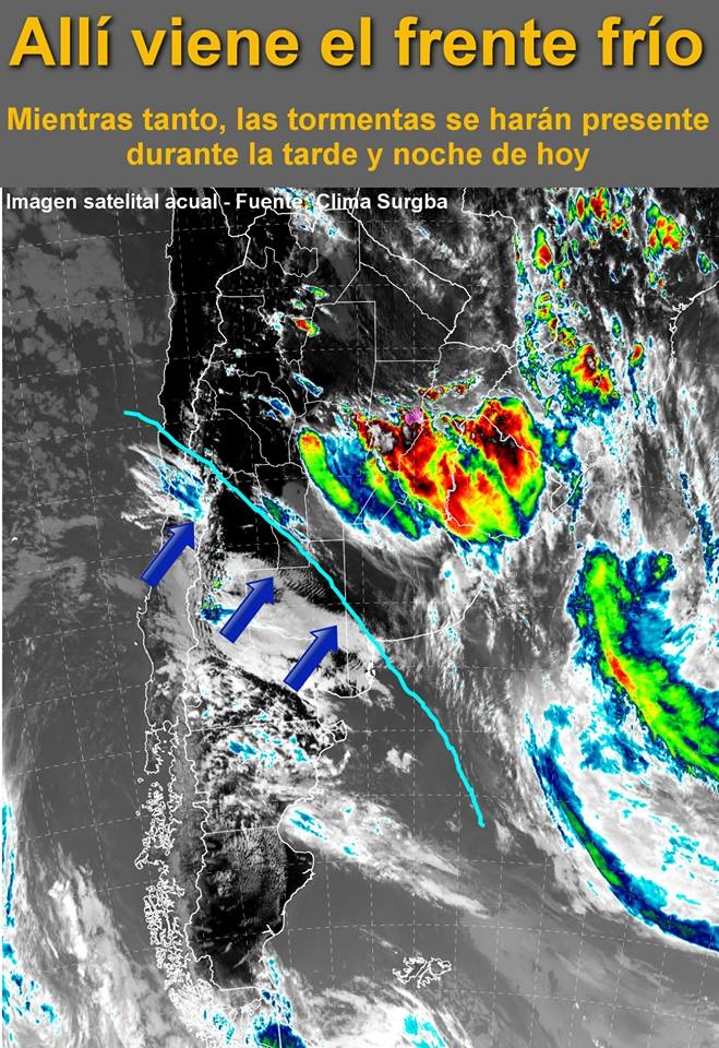 Si recuerdan el pronóstico que publicamos el lunes, allí mencionamos que esta tarde y durante el jueves habrá probabilidades de tormentas y chaparrones junto a un descenso marcado de temperatura. Pues, aquí en este aviso no solo confirmamos esa situación, sino que trataremos de detallarla mejor, así pueden estar prevenidos.