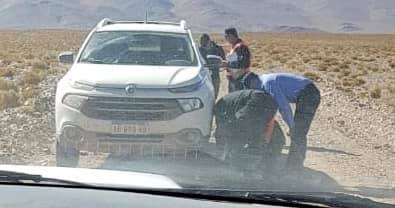 “Unos turistas alojados en la Hostería “Incahuasi” fueron a Antofalla, al regreso reventaron una rueda y no podían sacar el auxilio porque se les trabó el candado. Salieron caminando y luego de 6 Km. fueron encontrados por una Patrulla, que los acercó hasta su vehículo, les ayudaron a romper el candado y les cambiaron la goma”.