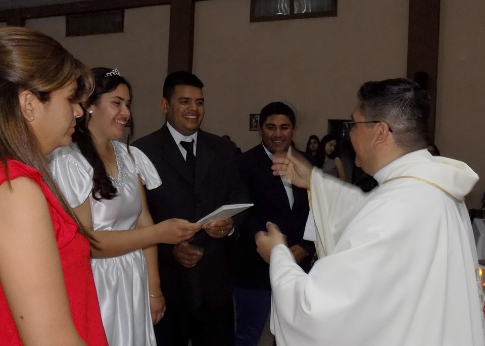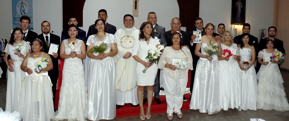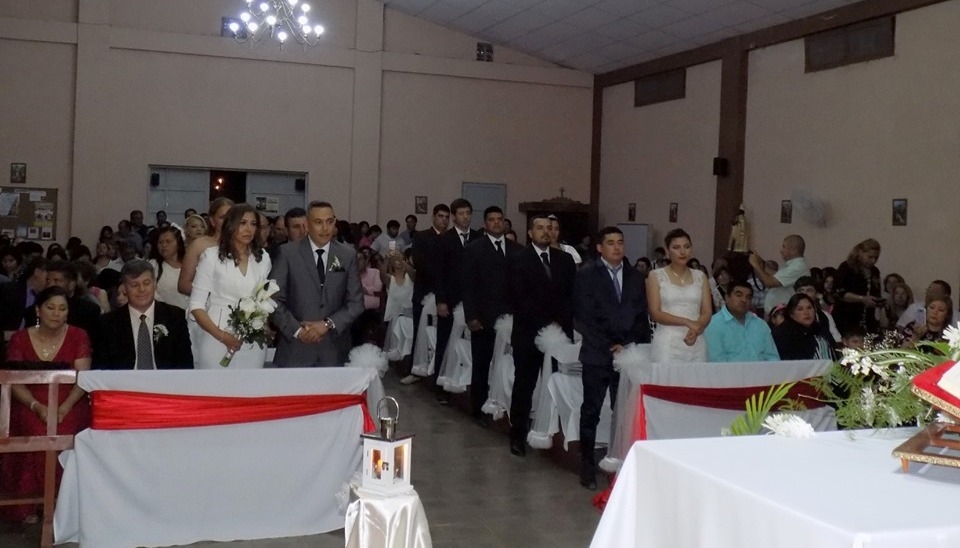 Mercedes del Valle y Rafael Gustavo; Anabel Celeste y Nelson Oscar; Lorena Vanesa y Diógenes Ramón; Débora Karina y Diego Sebastián; Graciela Edith y Ramón Moisés; Mariela Beatriz y Ramón Antonio; Guillermo Severo y Ivana del Carmen; Carina del Valle y Javier Antonio; Sonia Edith y Paulo César; Laura Inés y Oscar Eduardo, unieron sus vidas ante Dios durante la Misa presidida por el párroco, Pbro. Santiago Granillo. El viernes 11, hicieron lo propio, Elizabeth del Valle y Eduardo Eric.
