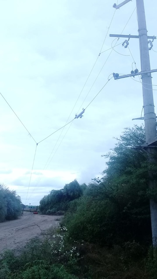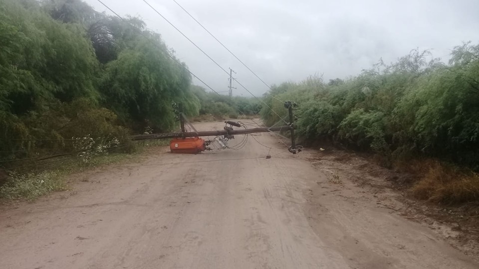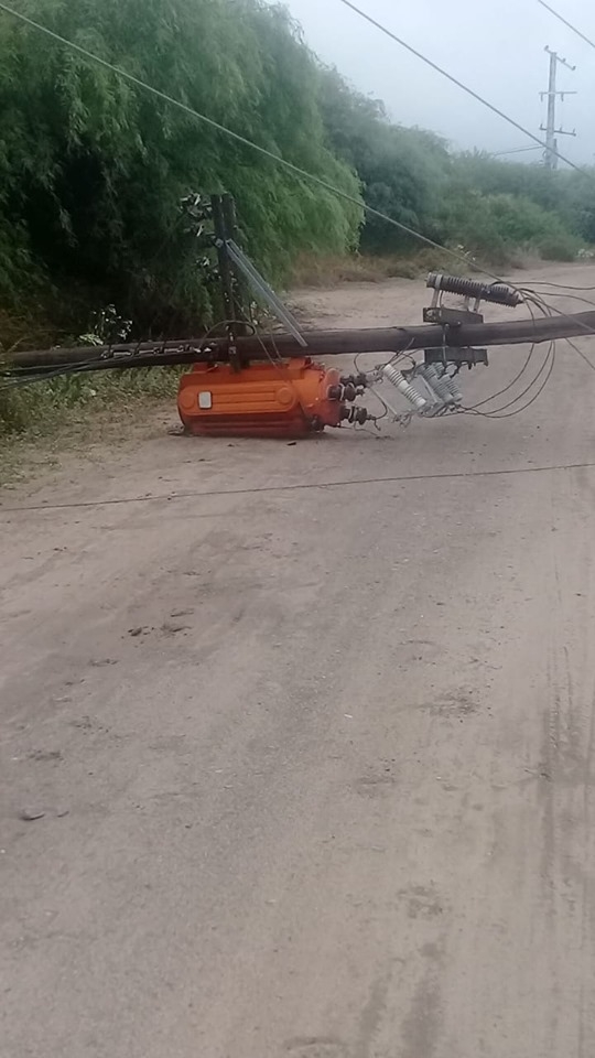 Como se muestra en las imágenes, la tormenta volteó un transformador en la zona del barrio El Matadero, en la localidad de Chumbicha, donde operarios de EC SAPEM todavía trabajan para normalizar el servicio.