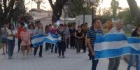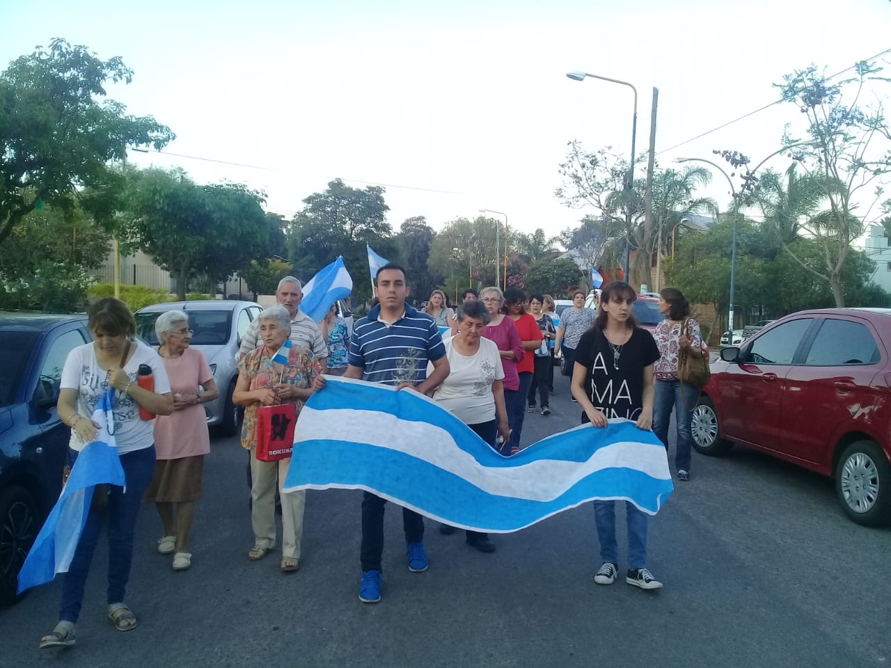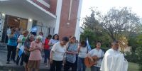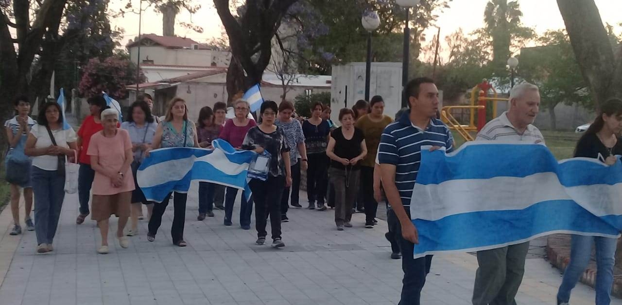 Los vecinos marcharon por las calles aledañas al templo, portando banderas argentinas, orando y cantando.