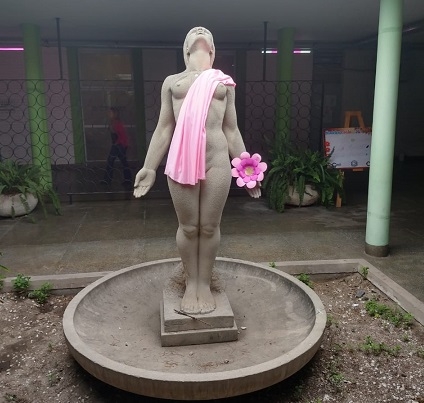 Por tal motivo, empleados de la dirección de Cáncer, se dirigen a las oficinas del Ministerio de Salud entregando un listón rosa a los empleados del nivel central y brindado una charla de concientización y sensibilización. También se vistió de color rosa a la emblemática estatua de la Mujer Desnuda del Ministerio y se iluminó el edificio de ese mismo color.