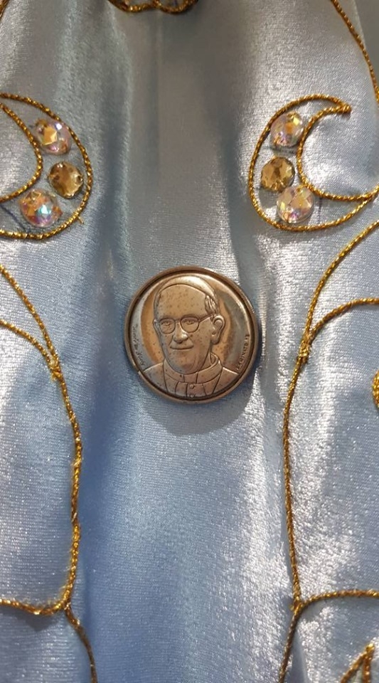 Al finalizar la ceremonia litúrgica, el Señor Obispo entregó al Párroco de la bendición y un prendedor enviados por el Santo Padre Francisco, que fue colocado en el manto de la Santa Patrona.