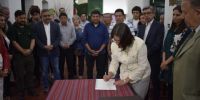 Del acto participaron, la gobernadora de la Provincia, Lucía Corpacci junto el intendente de la Capital, Raúl Jalil; el ministro de Obras Públicas, Rubén Dusso; la secretaria de Cultura, Jimena Moreno; el secretario de Cultura y Deporte de la Municipalidad Capital, Luis Maubecin y el cacique Marcos Emilio Salva.