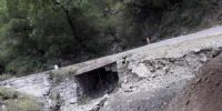 El puente, ubicado en el camino de la Cuesta de El Portezuelo antes de llegar al puesto de Vialidad Provincial, presenta visibles grietas de punta a punta y, como se observa en la imagen, está sostenido por puntales.