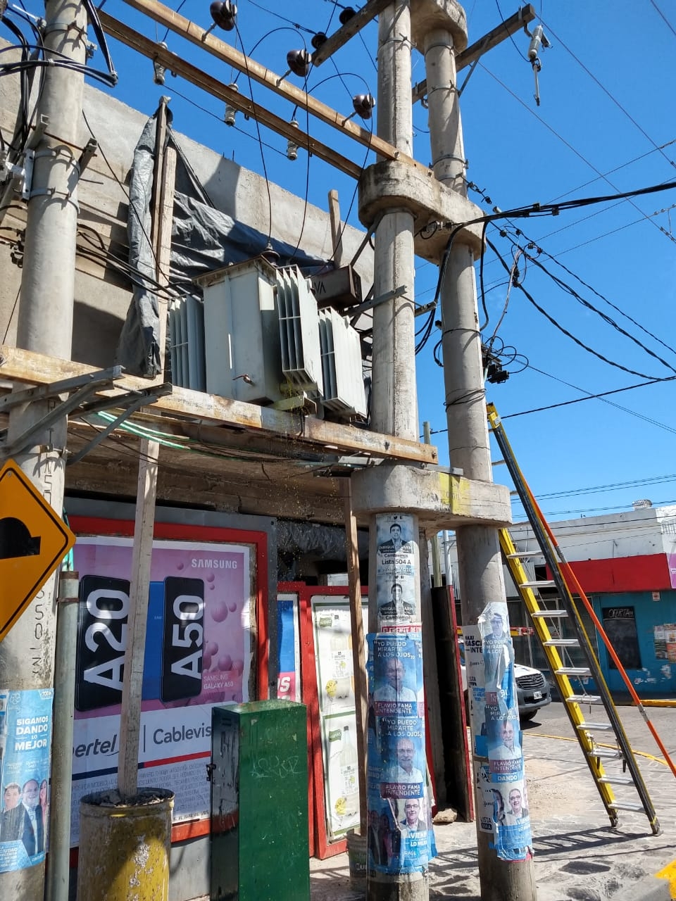 En la esquina de calles 25 de Mayo y Mate de Luna, al girar, un camión choco un transformador. El mismo volteo todo el aceite, que no es contaminante, pero si muy caro. La zona se quedó sin energía hasta que se realice el cambio del transformador.