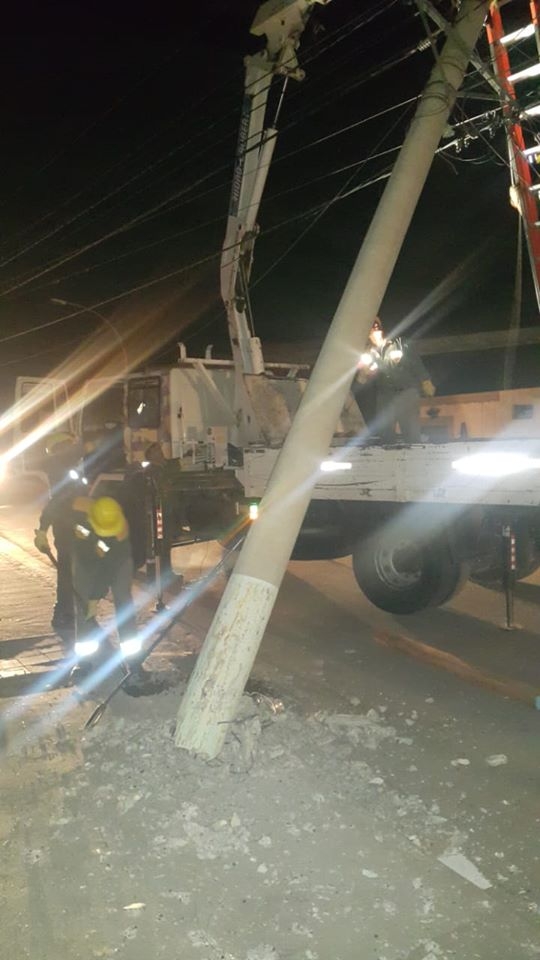 En la zona de La Puntilla, un camión chocó una columna de media tensión que debió ser reemplazada. La tarea demanda unas horas de trabajo en las cuales no es posible brindar servicio.