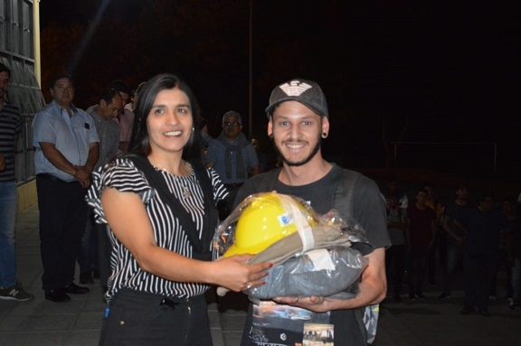 Cada uno de los inscriptos recibió un equipo completo de ropa de trabajo, consistente en botines de seguridad, pantalón, camisa, casco y guantes.