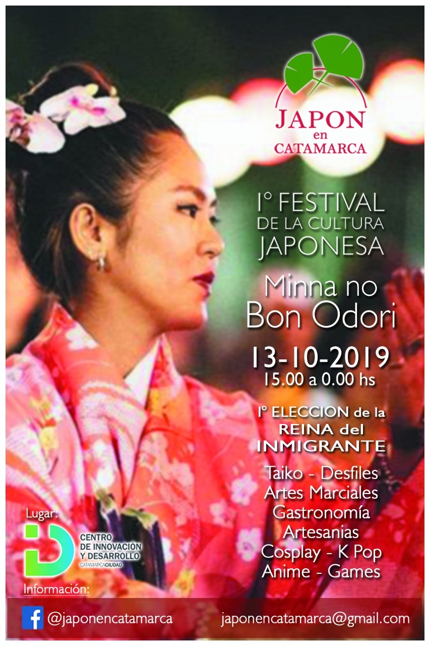 Organizado por la asociación civil Japón en Catamarca y con la producción de DC productora, el festival contará con la participación de grupos artísticos de Taiko (tambores) y Danzas Japonesas, desfile de kimonos y otras manifestaciones propias de la cultura nipona. Escuelas de Yudo y Karate realizarán exhibiciones de artes marciales mostrando el origen oriental de estas disciplinas.