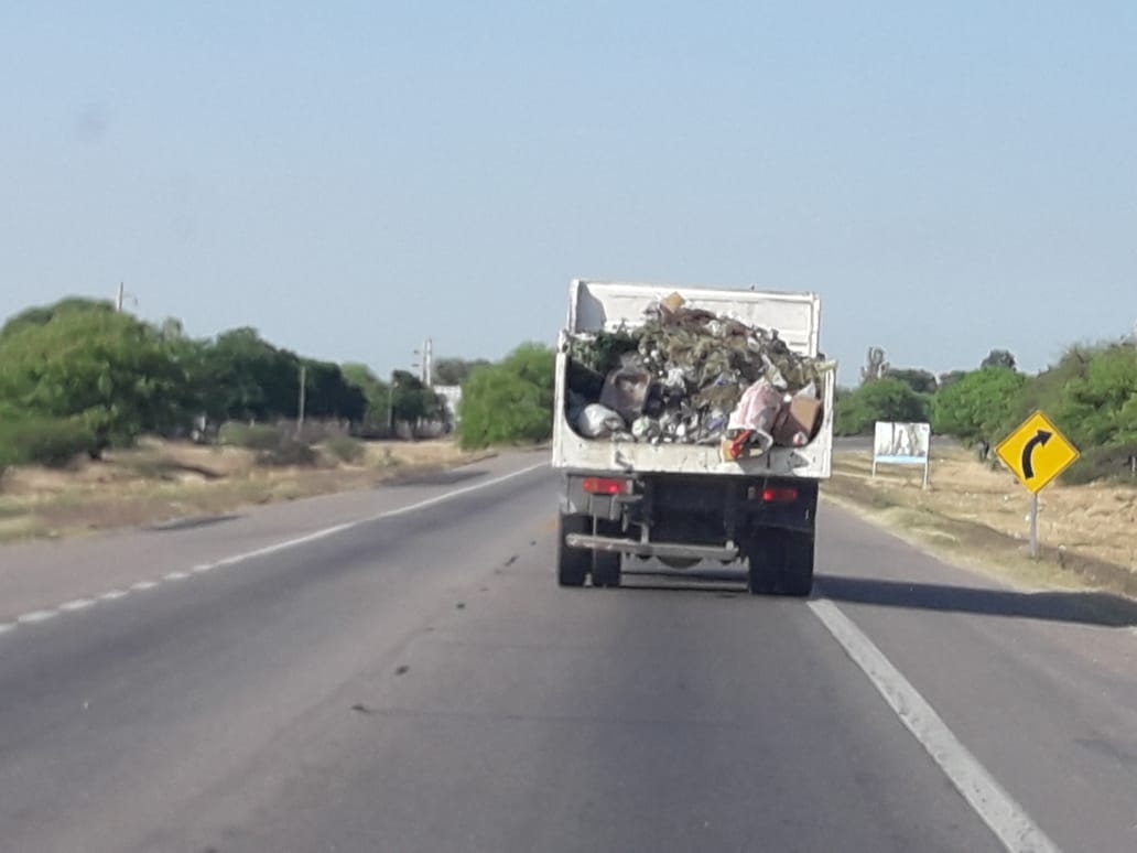 Mientras circula el camión perteneciente a la Municipalidad de Valle Viejo (Leg P-04) va perdiendo basura en el camino.