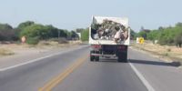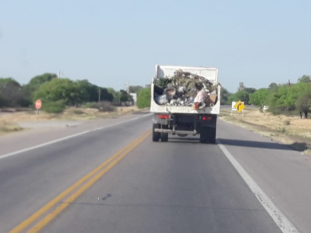 En la mañana de este miércoles, un camión transita cargado por la mañana de este miércoles sobre ruta 38, camino a la planta de tratamiento de residuos.