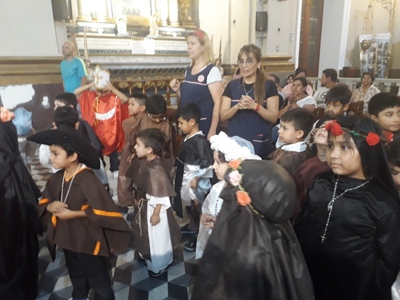 La propuesta, organizada por la Pastoral de la Niñez, convocó a los pequeños de instituciones educativas y particulares, quienes llegaron vestidos de santos y otros portando sus imágenes.