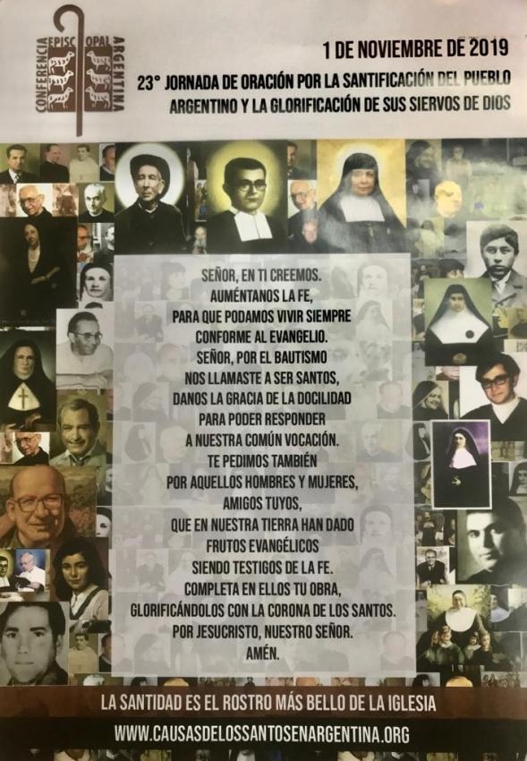 Con el lema “La santidad es el rostro más bello de la Iglesia”, la Delegación para las Causas de los Santos de la Argentina recordó que el viernes 1 de noviembre se celebra la 23º Jornada Nacional de Oración por la Santificación del Pueblo Argentino y la Glorificación de sus Siervos de Dios.