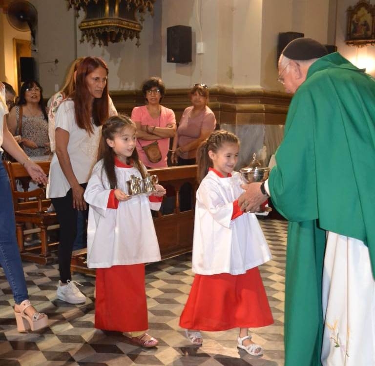 La celebración eucarística fue presidida por el Pbro. Ángel Nieva y contó con la activa participación de los pequeños, acompañados por sus padres y familiares.