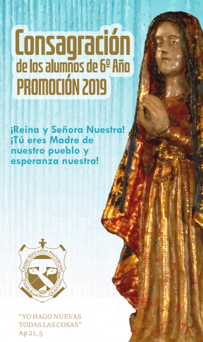 El jueves 21 de noviembre, a las 11, se celebrará la Santa Misa y consagración a la Virgen del Valle, de los alumnos de 6° año del Instituto Privado Padre Ramón de la Quintana, en la Catedral Basílica y Santuario Mariano.