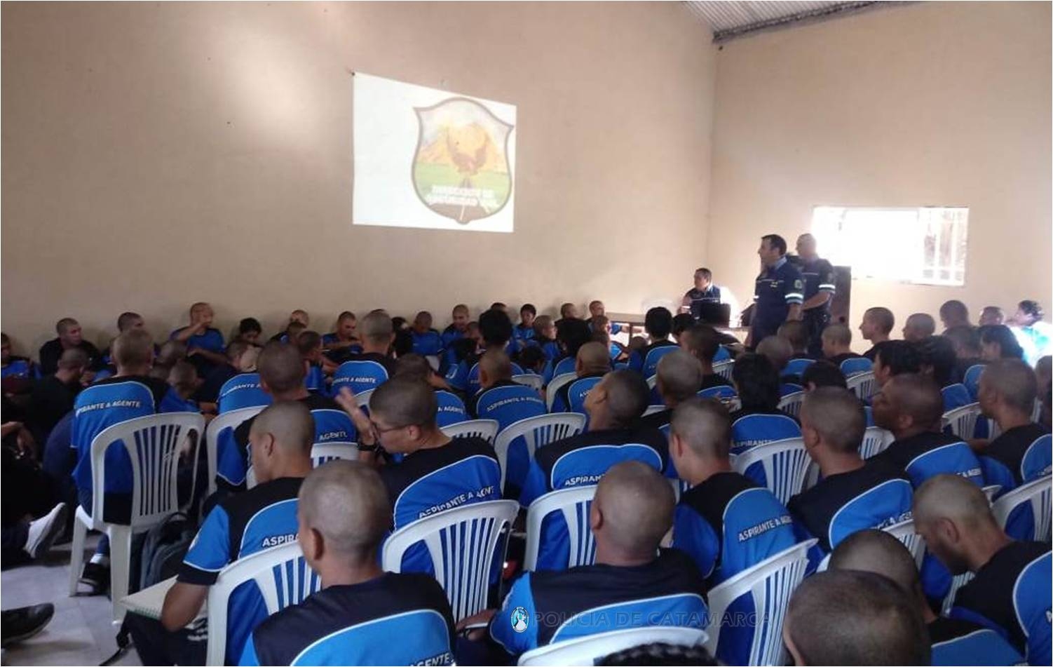 Entre los días lunes y martes pasados, en el Polideportivo del Colegio Padre Ramón de la Quintana, ubicado en la ruta provincial N° 4, a la altura del Km. N° 6, personal policial del Gabinete de Docencia y Capacitación, dependiente de la Dirección de Seguridad Vial de la Policía de la Provincia llevó a cabo una jornada de capacitación destinada a aspirantes a agentes de la Escuela de Suboficiales y Agentes “Fray Mamerto Esquiú”.
