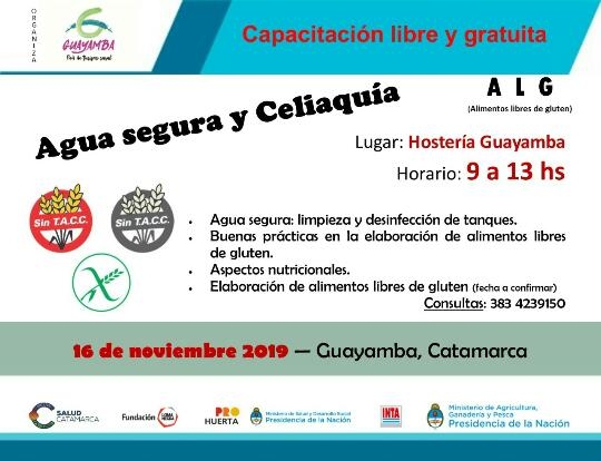 Se desarrollarán temas como: Agua Segura: Limpieza y Desinfección de Tanques, Buenas Prácticas en la Elaboración de Alimentos Libre de Gluten, Aspecto Nutricionales.