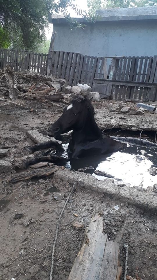 El caballo cayó a un pozo ubicado en inmediaciones de la vivienda de la familia Perea, colindante al domicilio de la familia Frigeiro.