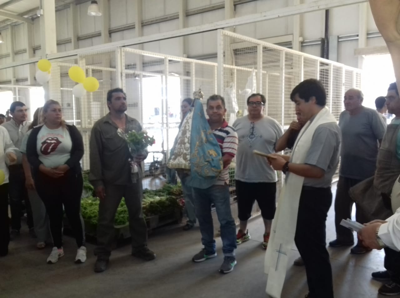 En la mañana del viernes 15 de noviembre, desde muy temprano y con la ansiedad de quienes van a vivir un momento especial, los trabajadores del Mercado de Abasto Municipal, y sus autoridades, recibieron a la Madre del Valle, quien llegó hasta el predio, ubicado en las afueras del casco céntrico de la ciudad capital, en brazos del Capellán del Santuario Mariano, Pbro. Lucas Segura, y custodiada por los Guardianes de la Virgen.
