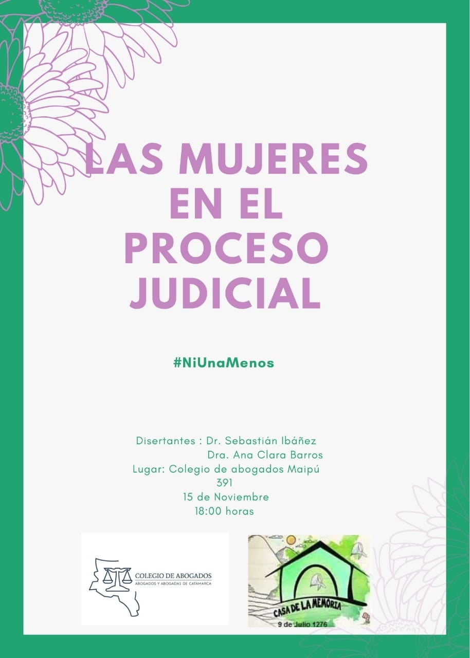 Del ciclo, que es organizada por la entidad que nuclea a los abogados catamarqueños y la Casa de la Memoria, que preside Noemí Toledo, participarán como disertantes el Dr. Sebastián Ibáñez y la Dra. Ana Clara Barros.