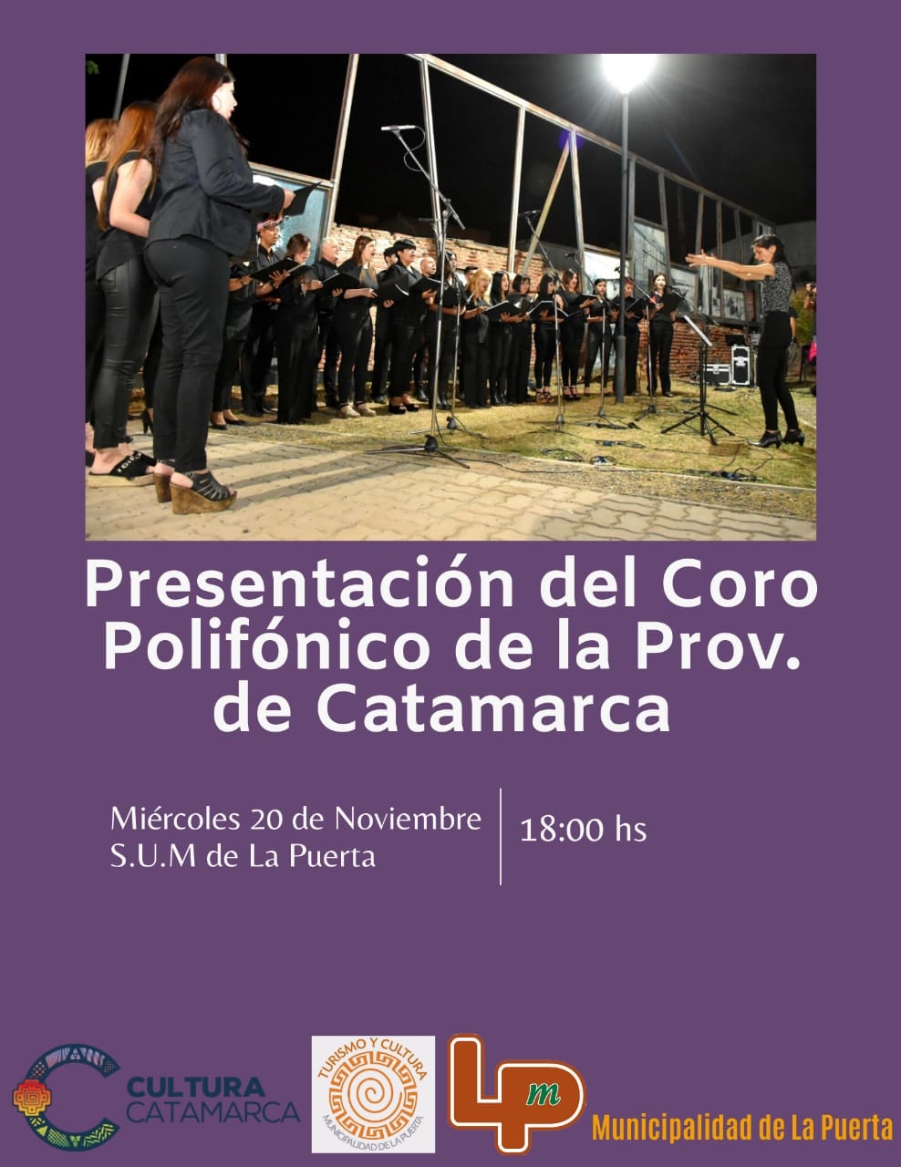 “Viajamos a localidad de La Puerta para brindar un cierre artístico a la tercera edición de este evento de gran valor y enriquecimiento antropológico y arqueológico para nuestra provincia. Interpretaremos obras académicas y populares muy variadas entre sí y que tienen la virtud de conectar fácilmente con diferentes emociones de las personas. El público escuchará piezas del Maestro Carlos Guastavino, L.V. Beethoven, el canto de Pregones del Altiplano, de Damián Sánchez, y disfrutará de un cierre con obras de nuestro cancionero popular”, señaló la directora del coro Vanesa Vanina Aredes.