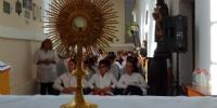 El miércoles 20, en vísperas de esta jornada de gracia, los fieles y devotos participaron de la Adoración Eucarística, en el templo parroquial de San Roque, en Recreo, departamento La Paz.