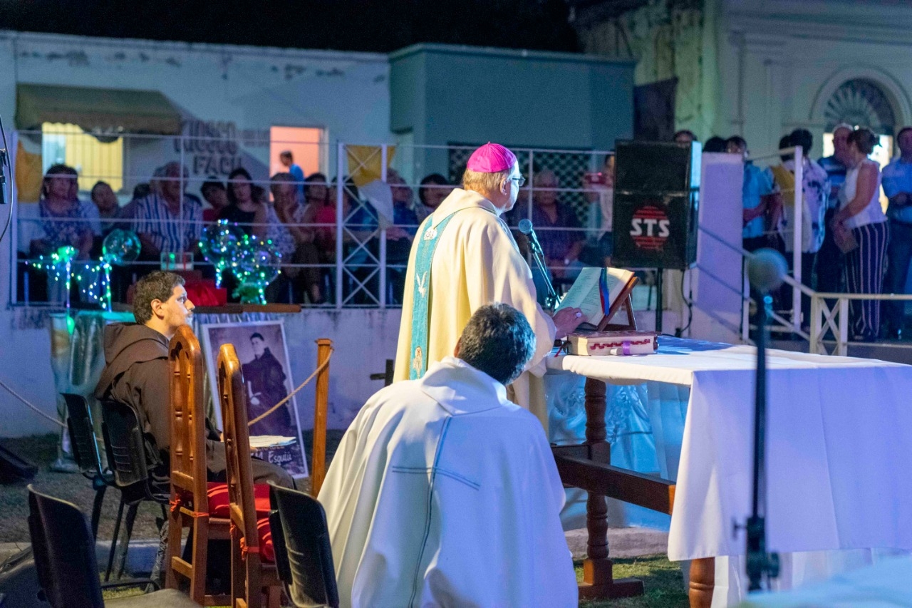 “Por eso estamos acá, y les agradezco de corazón porque a lo largo de toda la jornada han peregrinado aquí, a la Casa Natal de Fray Mamerto, donde estaba expuesto el Santísimo, los niños, profesores y maestros de los distintos colegios y escuelas de Fray Mamerto Esquiú. Y estamos culminando esta jornada de acción de gracias con la celebración de la Misa. Les agradezco que estén aquí presentes en gran número y que lleven esta alegría a todos sus hogares, porque la alegría tiene que continuar”, manifestó.