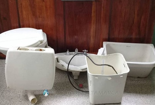 El personal policial interviniente, realizó amplios recorridos por el lugar y procedió a la demora de un adolescente de 17 años, y durante el procedimiento se hizo presente una joven de apellido Ramírez, de 20 años, quien manifestó ser su hermana e hizo entrega voluntaria de un inodoro con su respectiva mochila, ambos de color blanco, un lavamanos de plástico blanco, un calefón eléctrico, y una pileta de lavar, que quedaron en calidad de secuestro hasta determinar su legitima propiedad y procedencia.