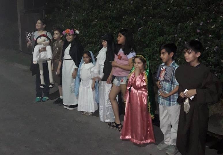 En la sede parroquial ubicada en Villa Dolores, departamento Valle Viejo, se ofició la Santa Misa, a cuya finalización, los chicos, caracterizados de sus Santos favoritos, recorrieron casas, negocios y hospitales del barrio entregando estampitas.