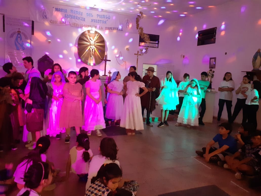 Los pequeños recorrieron las calles del barrio repartiendo estampitas y caramelos, e invitando a todos los vecinos a ponerse en "Modo Congreso Mariano Nacional", para honrar a la Madre del Valle.
