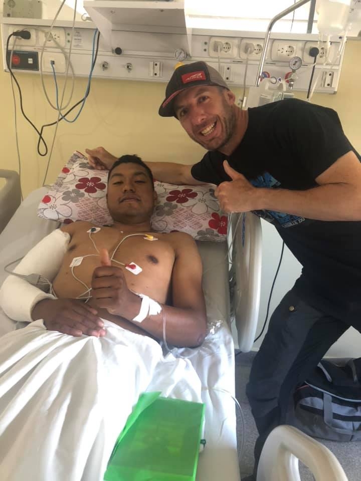 Luego de permanecer el fin de semana internado en un sanatorio privado, el efectivo policial recibió la visita del maratonista, quien le agradeció por haberlo custodiado.
