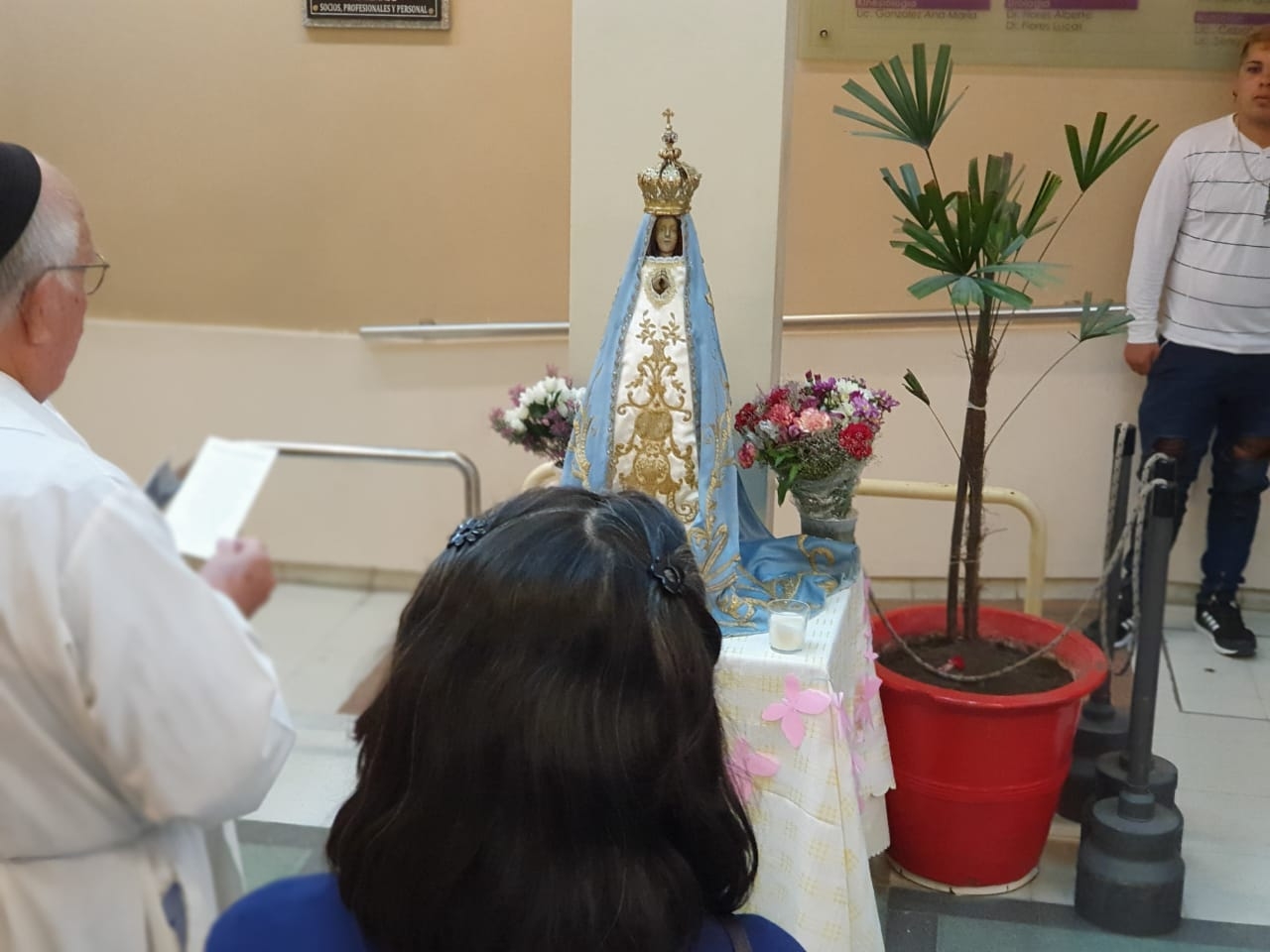 Con mucha devoción, fue recibida por al personal médico y de otras áreas de esa institución privada de salud de la ciudad capital.