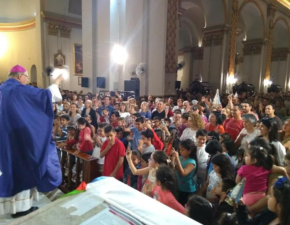 Luego de saludar a los alumbrantes, durante su homilía, Mons. Urbanc, se refirió a la misión que tiene la Pastoral de la Niñez y la necesidad de que la comunidad cristiana articule todas las acciones necesarias para acoger, suscitar y acompañar los procesos de fe de los niños y de sus familias.