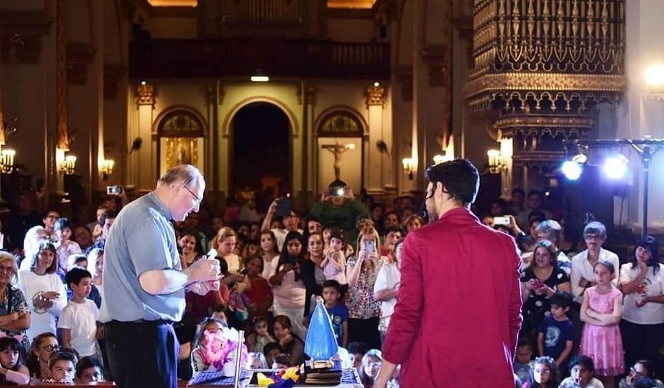 Luego, los chicos disfrutaron de los trucos y las ocurrencias del mago Martín, quien invitó al Señor Obispo a sumarse a este grato momento.