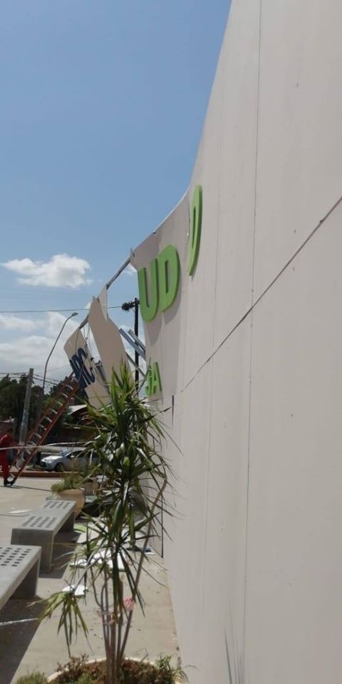 Las fuertes ráfagas que se registran en la jornada de este jueves, voltearon una frágil estructura se desprendió por efecto del viento. Afortunadamente, no había vecinos en el lugar. (Fuente: Radio Valle Viejo).