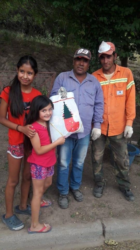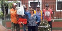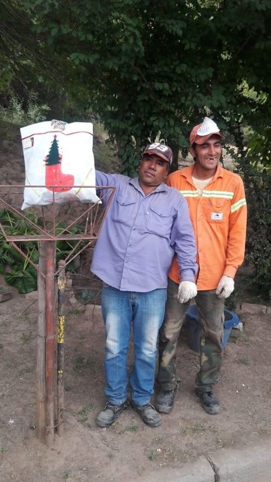 Por iniciativa de varios vecinos del lugar, los canastos de residuos domiciliarios no contenían basura, sino que fueron adornados con bolsas navideñas de regalo para los empleados que trabajan incansablemente soportando cualquier inclemencia del tiempo.