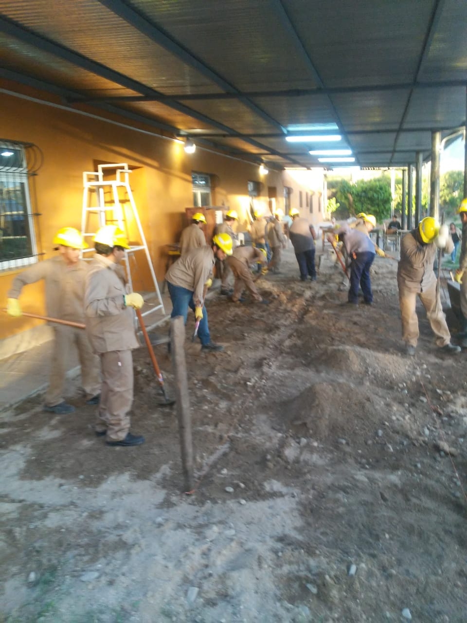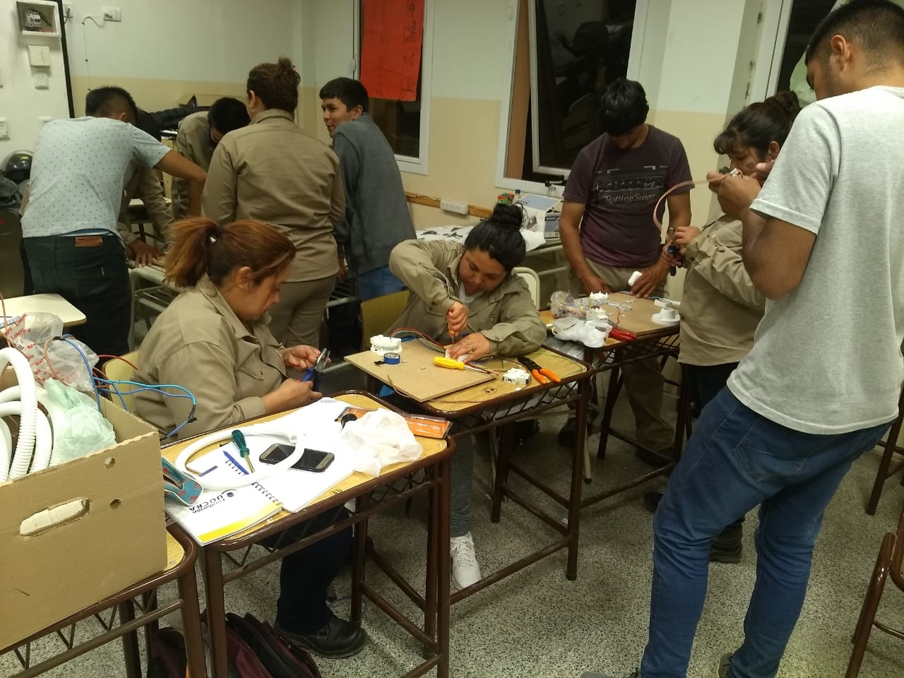 Demostrando la necesidad de inter relación, coordinación y trabajo conjunto de todas las especialidades de las capacitaciones, cada uno de los trabajos realizados se complementó con las acciones de los cursantes de “Instalación Eléctrica Domiciliaria”, quienes electrificaron el quincho de la institución, hicieron lo propio con el aula contigua, iluminaron la galería de la escuela y colocaron en la misma tomas corrientes exteriores y repararon proyectores de iluminación del predio escolar.