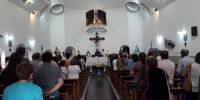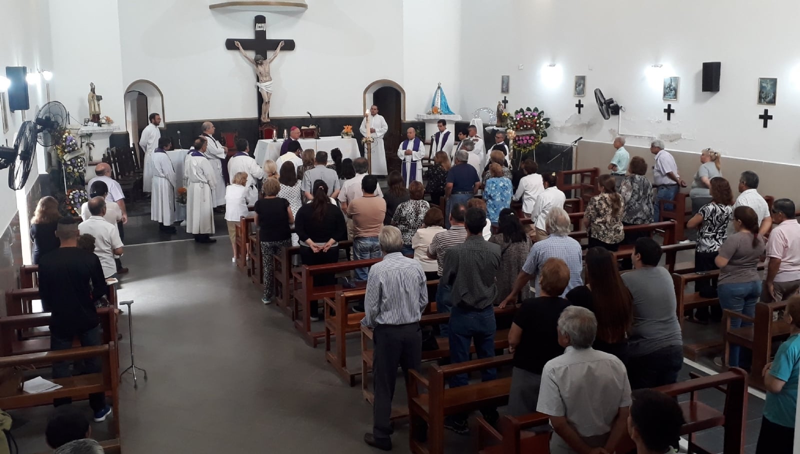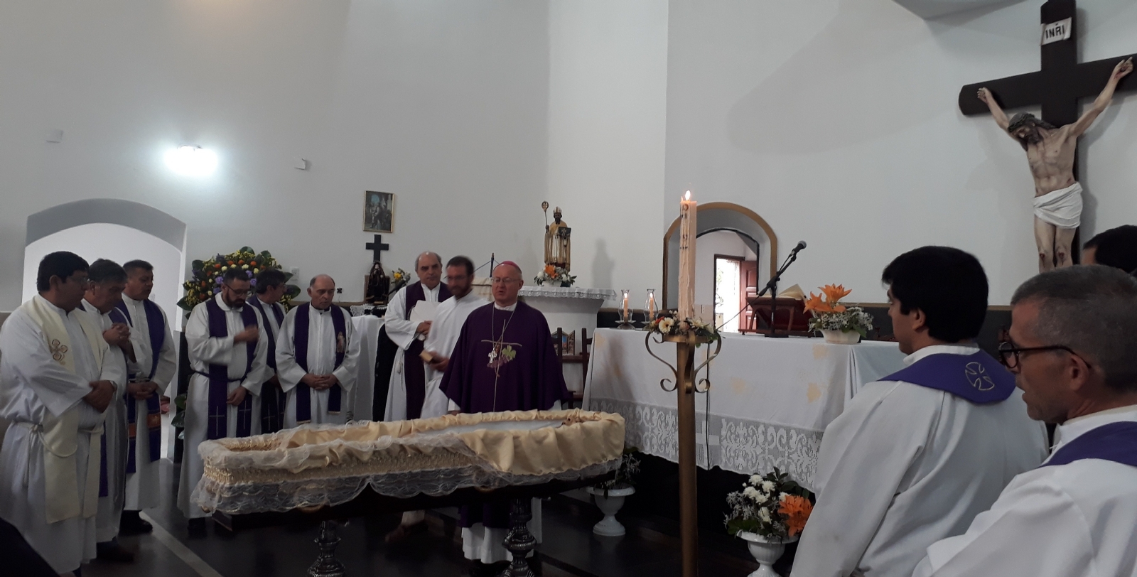 La Misa exequial fue presidida por el Obispo Diocesano, Mons. Luis Urbanc, concelebrada por numerosos sacerdotes del clero local, con la participación de familiares, amigos y miembros de distintas comunidades a las que pastoreó, quienes se dieron cita en el templo parroquial de San Nicolás de Bari, barrio La Viñita, para darle el último adiós.