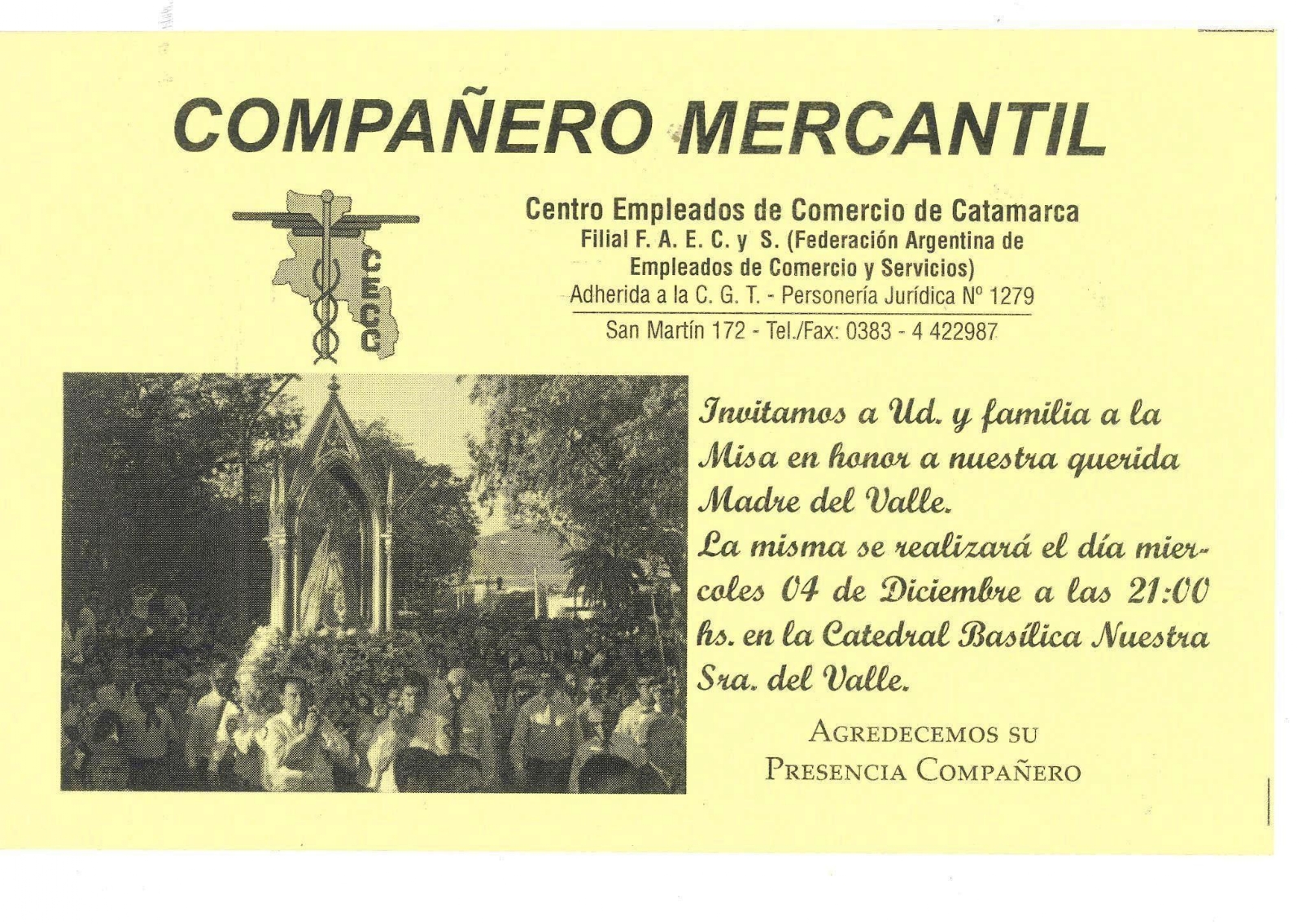 La celebración religiosa se realizará mañana miércoles 4 de diciembre, a las 21 horas, en la Catedral Basílica Nuestra Señora del Valle.