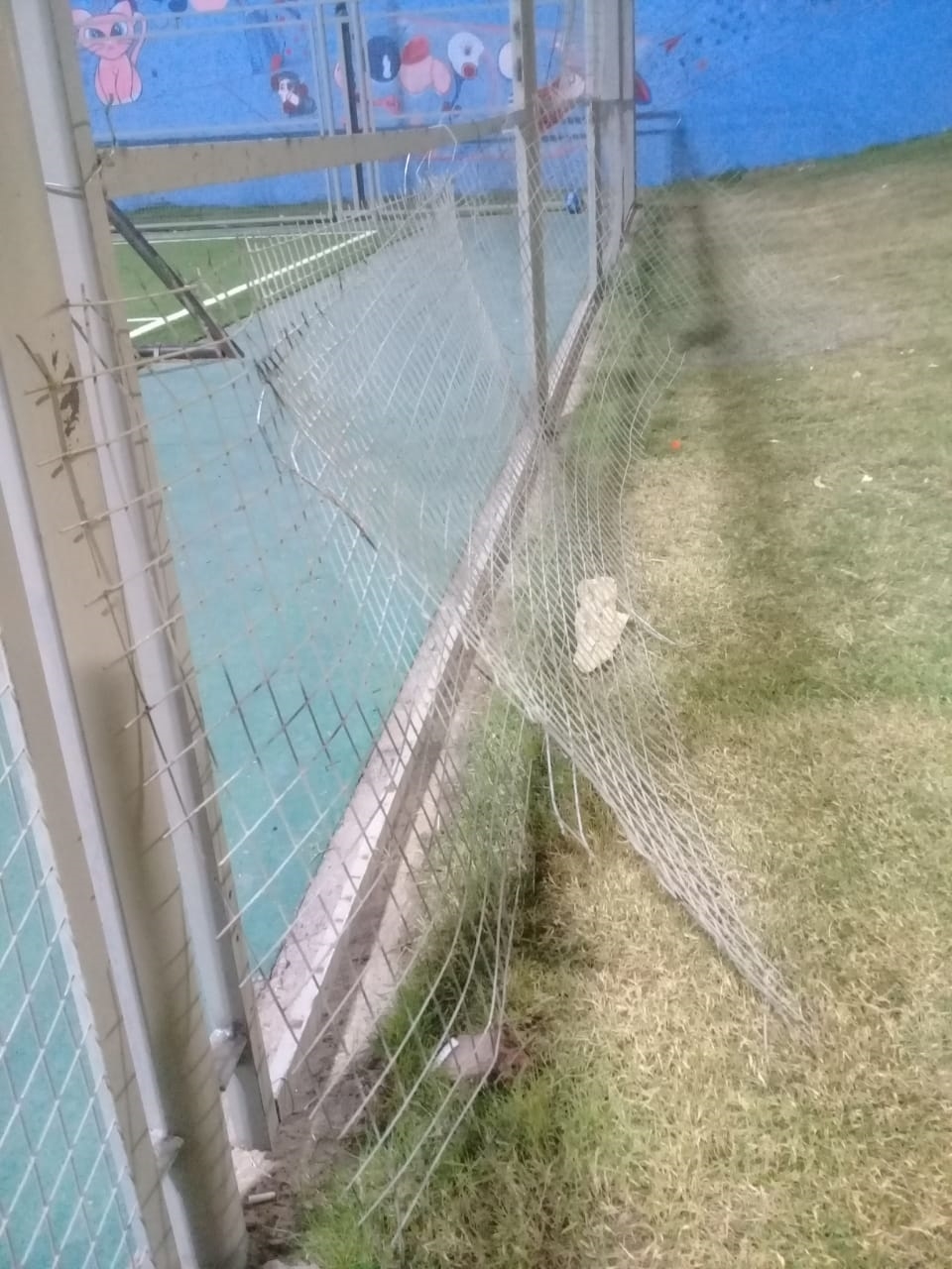 En la mañana de este martes, último día del 2019, un grupo de desconocidos desprendieron todo el alambrado que bordea una de las canchas ubicadas en el predio.