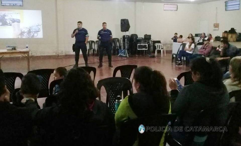 La charla fue llevada a cabo en la plaza Manuel Belgrano de la localidad de La Merced, departamento Paclín, bajo el lema “Situaciones de Emergencia, una responsabilidad de todos”, destinada a personal del área salud, Hospital de La Merced, Policía de Catamarca, y estudiantes de Escuelas Secundarias.