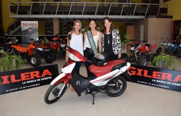 En la jornada de hoy la Reina Nacional e Internacional del Poncho y Embajadora Turística y Cultural de Catamarca, Agustina Aranda, recibió de manos de la Secretaria de Turismo de Catamarca, Natalia Ponferrada y de la gerente de la firma Puma Catamarca S.A., Florencia Franco, la moto Gilera a la que se hizo acreedora al asumir su reinado, siendo la misma parte de los obsequios que tienen las Reinas del Poncho.