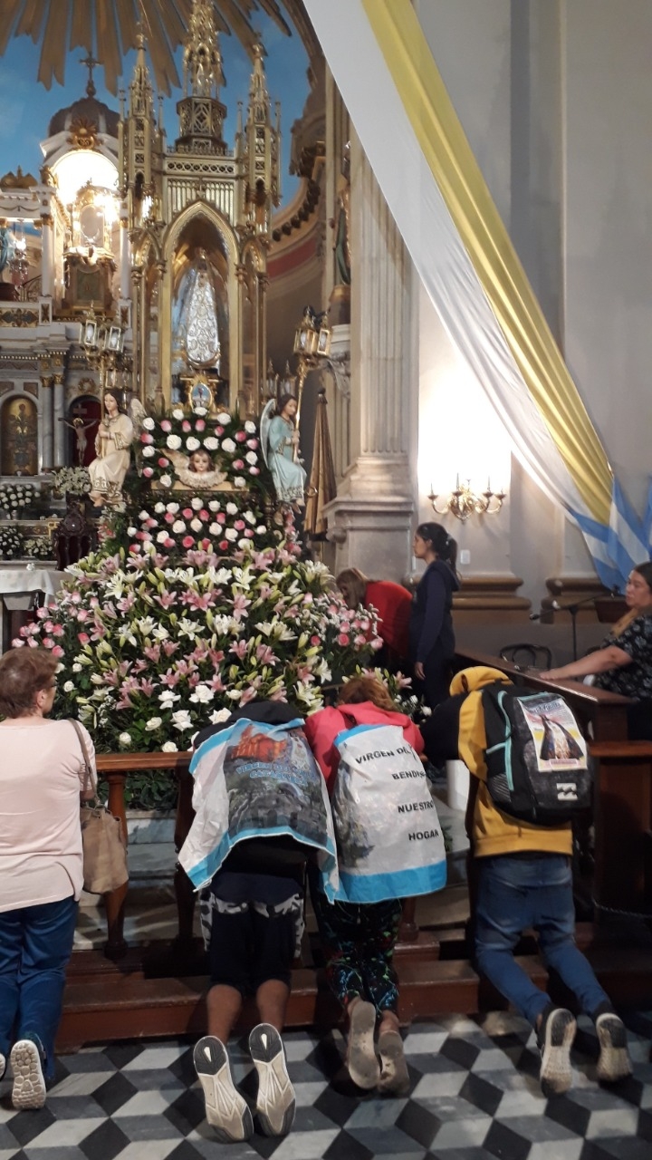 Respecto del trayecto que transitaron, contó que “nos fue bien, la Virgen nos ha ayudado mucho y también la gente en la ruta. Luego de tres días y medio caminando, estamos doloridos en las piernas y con ampollas. El sábado volvemos en moto”.